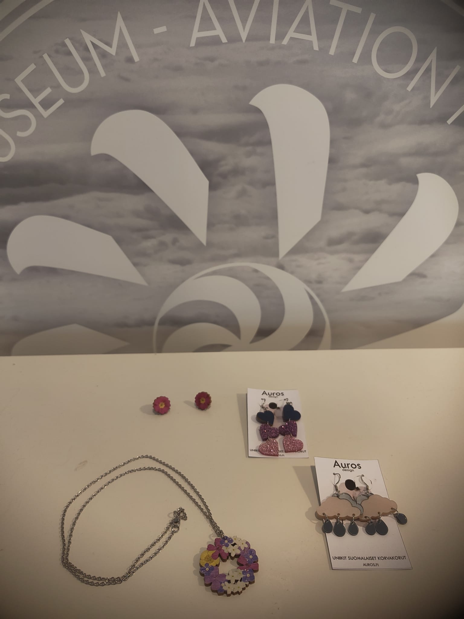 The selection includes, among others, wonderful handmade jewelry from Vantaa-based sole proprietor Inx Design. The jewelry is made from Finnish birch plywood, melted glass, surgeon's steel and silver. We also have beautiful jewelry from Finnish Auros.