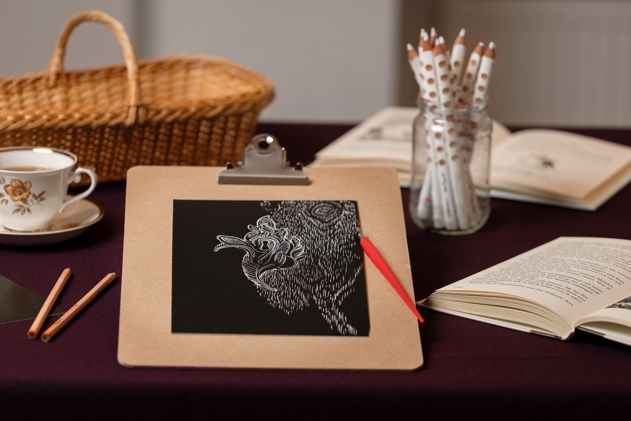 Näissä työpajoissa keskitytään raapekartonkitekniikkaan, jossa tummapintaisesta kartongista luodaan kaiverrusterällä tunnelmallisia viivapiirustuksia. Jansson käytti raapetekniikkaa muun muassa Taikatalvi-kirjan kuvituksissa.