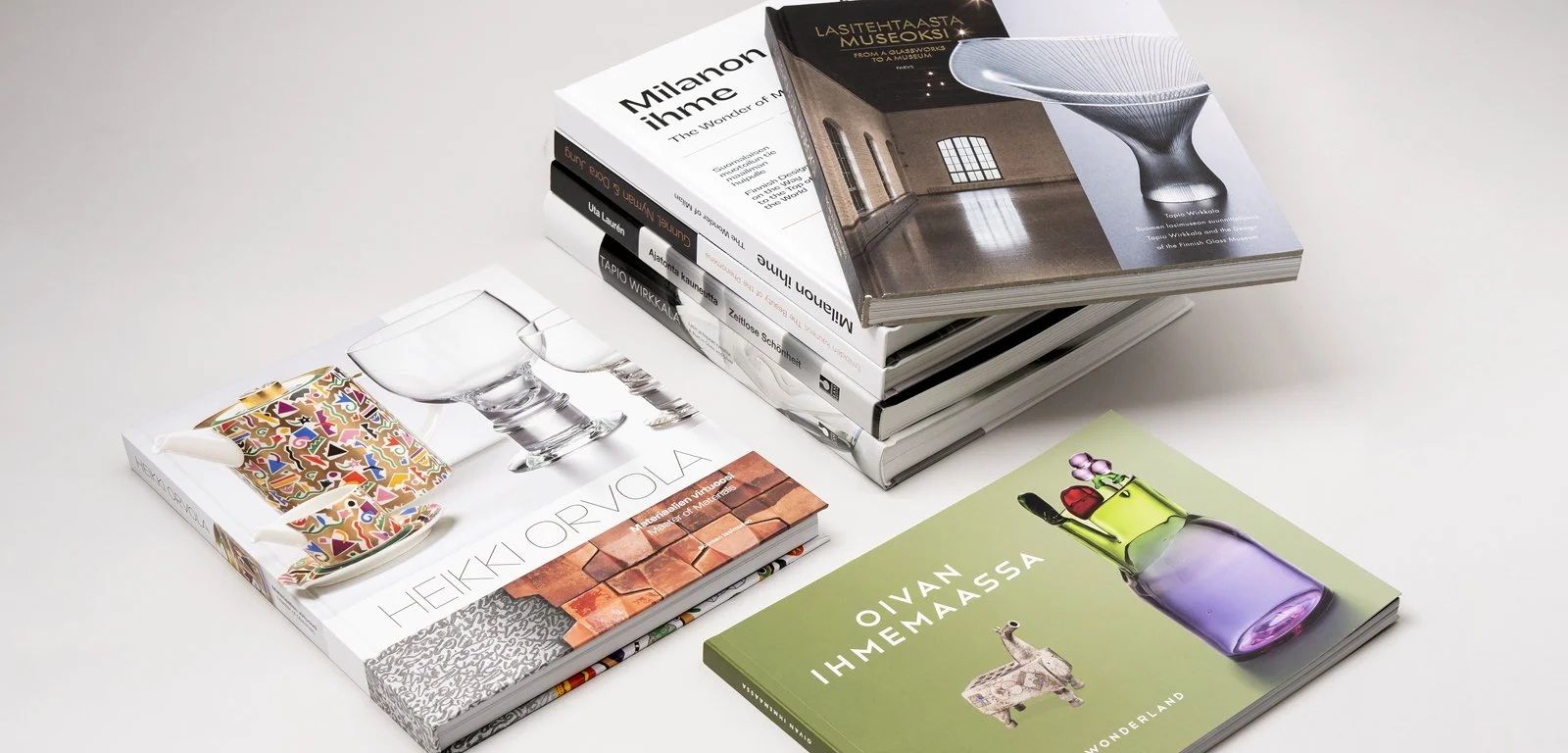 Laita mukaan lahjapakettiin tai ilahduta itseäsi Suomen lasimuseon museokaupasta löytyvällä lasialan kirjallisuudella, johon saat Museokortti-etuna 10 % alennuksen. Alennettuun valikoimaan kuuluu mm. Heikki Orvola Materiaalien virtuoosi -kirja.