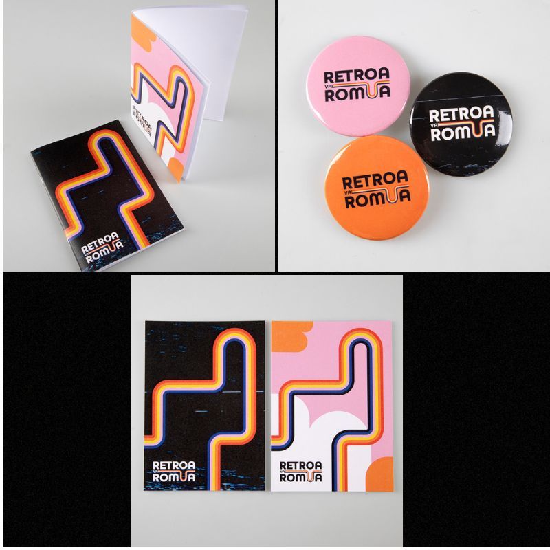 Retroa vai romua -tuotesetti 5€ (sis. pinssi, vihko ja postikortti)