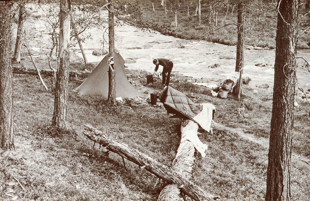 Lapinkirjoistaan tunnettu Kullervo Kemppinen (1921–2012) oli ahkera vaeltaja ja innokas retkeilijä, jonka teoksissa kuuluvat luonnon kutsu ja tunturien tarinat. Kemppinen mielletään usein perinteisen eräelämän vaalijaksi, mutta vuonna 1966 julkaistu Eräretkeily-kirja paljastaa hänen modernin ja käytännöllisen suhtautumisensa varusteisiin. Kemppinen painottaa keveyttä ja tarkoituksenmukaisuutta romantisoitujen mutta epäkäytännöllisten välineiden sijaan.