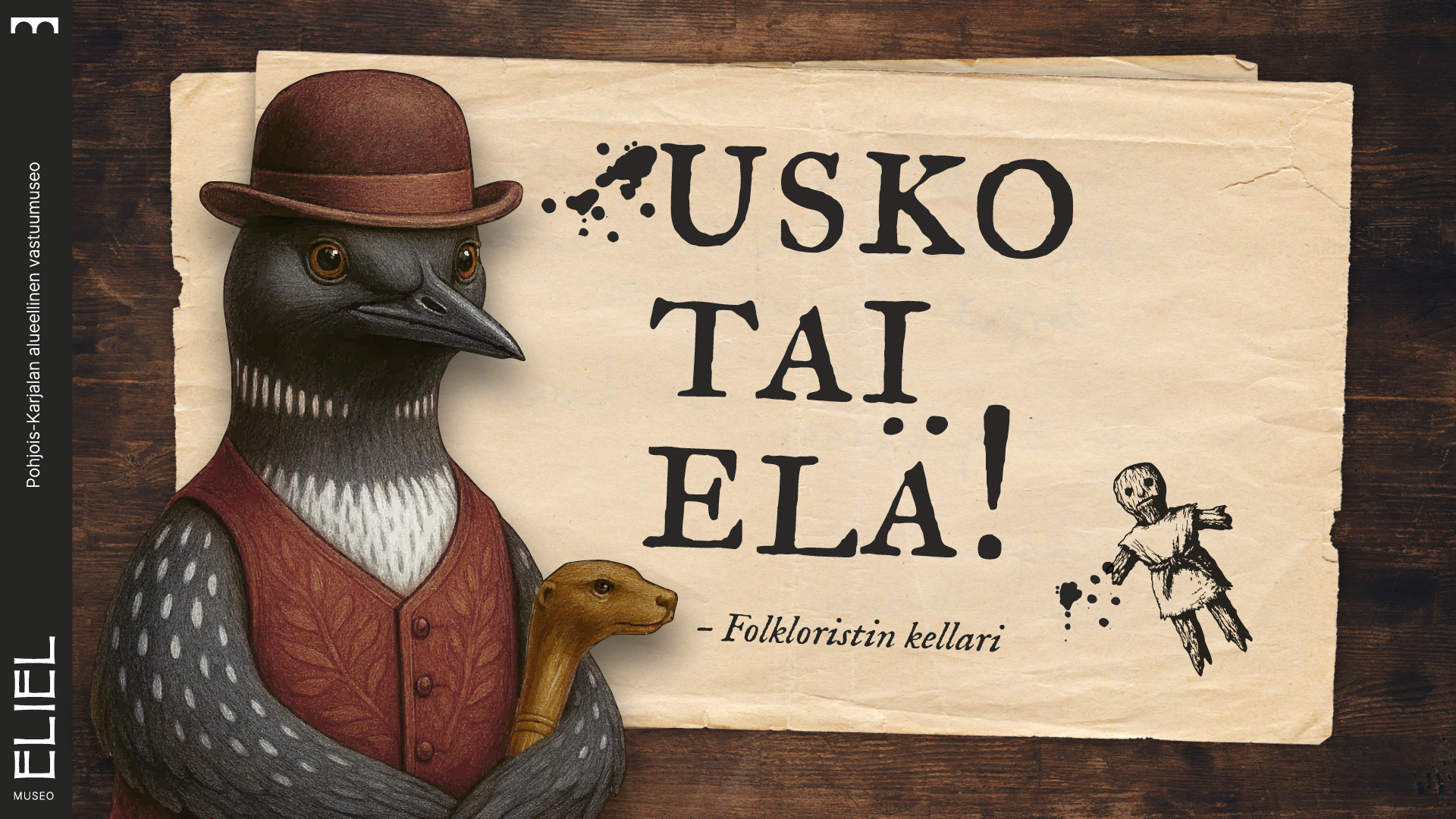 Museo Elielin kellarikerroksessa astutaan kansanperinteen, uskomusten ja myyttien maailmaan. Millaisia uskomuksia on liitetty eri esineisiin? Millaisia uskomuksia liitetään eri esineisiin? Millaisia ovat nykyaikaiset myytit?