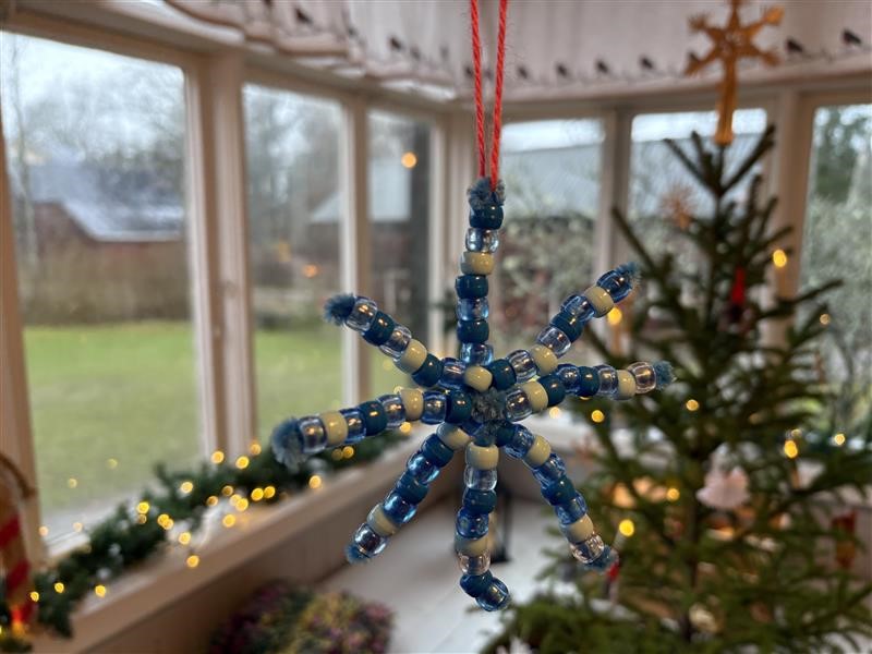 Työpajassa askarrellaan yhdessä vaihtuvin teemoin. Tänään teemme lumihiutalekoristeita helmistä.