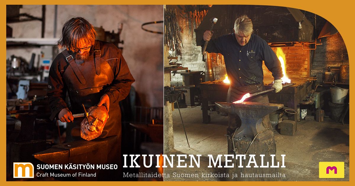 Miltä näyttää sepäntyö tänään, kun kipinät sinkoavat kohti nykytaidetta, muotoilua ja ympäristöä? Tule kuulemaan, kun Ikuinen metalli -näyttelyn kuratoineet seppämestarit Jouko Nieminen ja Antti Nieminen avaavat modernin sepäntyön maailmaa ja näyttelyn taustoja Suomen käsityön museossa lauantaina 10.1. klo 12. Tapahtuma sisältyy museon pääsymaksuun.