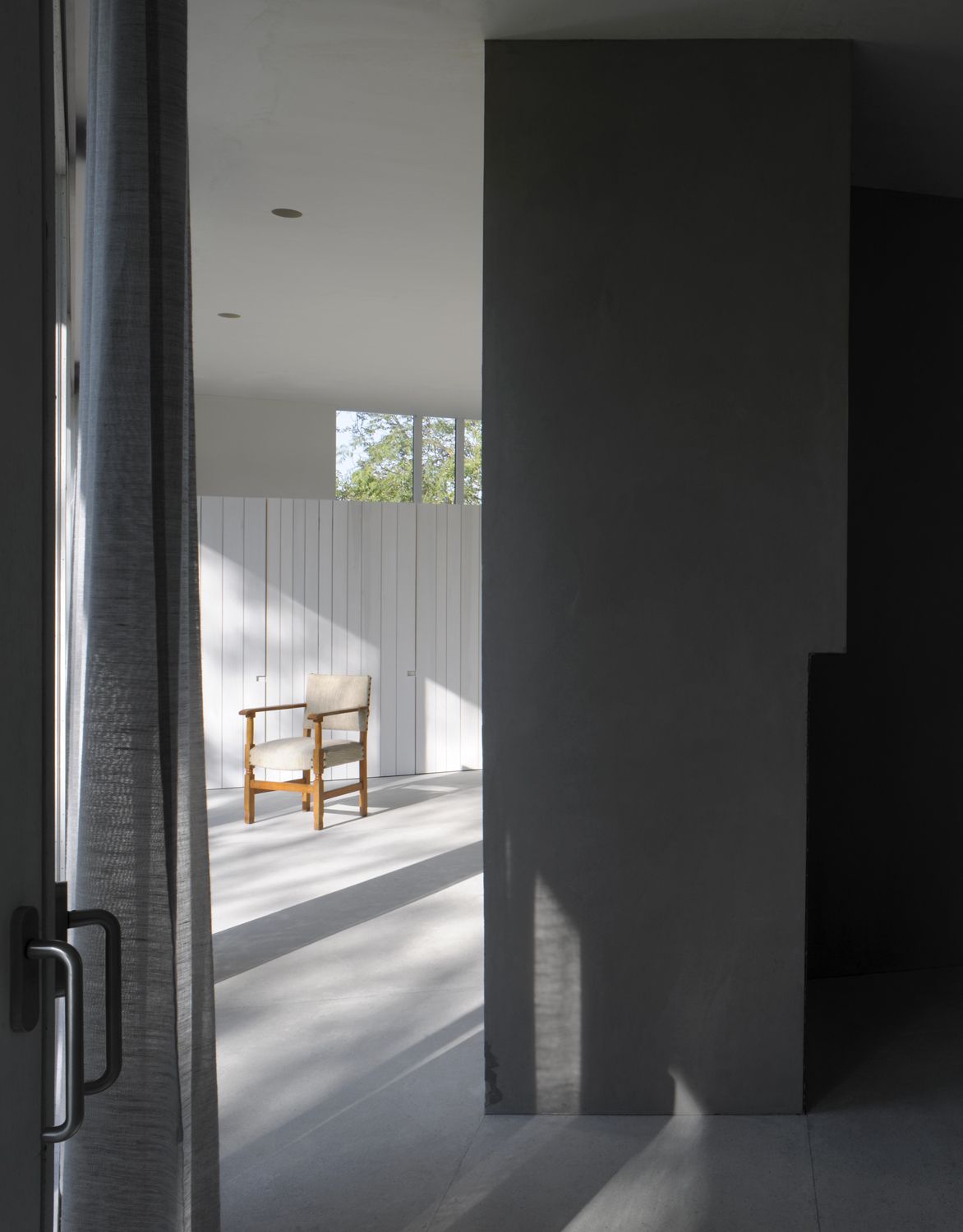 Alvar Aalto -mitalilla palkittu arkkitehti Marie-José Van Hee otti tarkasti huomioon omassa suunnittelussaan sen miten valo käyttäytyy erilaisilla materiaaleilla. Galleriassa esillä olevan näyttelyn nimi, Auringon maalaamia koteja, kuvastaa tätä ajattelua.