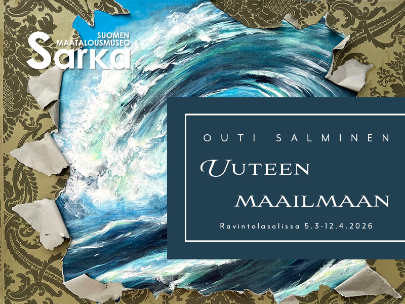 Outi Salminen: Uuteen maailmaan on esillä Ravintolasalissa 5.3-12.4.2026. Näyttelyyn voi tutustua ilmaiseksi.