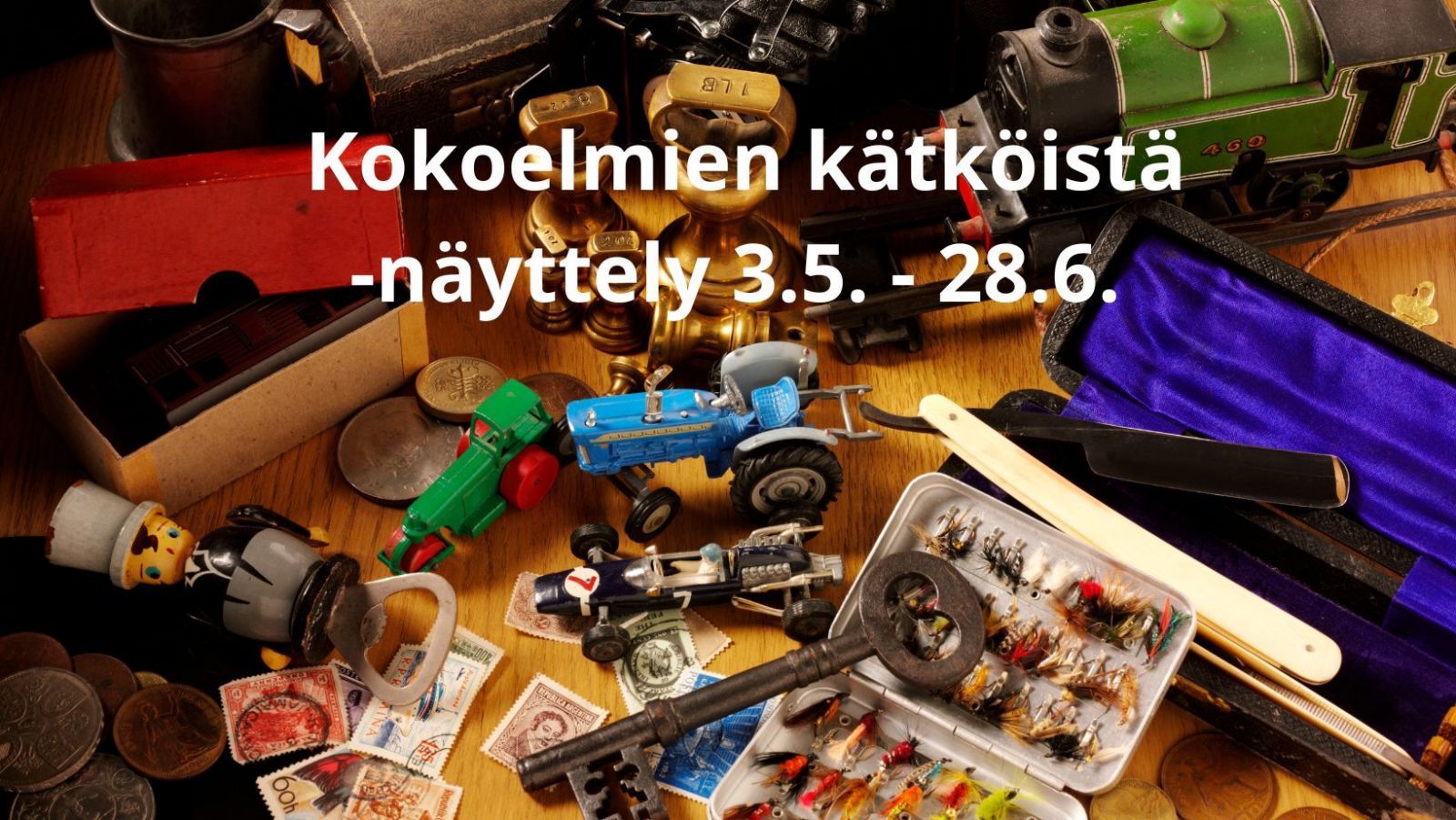 Näyttely Kokoelmien kätköistä esittelee harvinaisia ja mielenkiintoisia esineitä postimerkeistä rahoihin ja vanhoihin painokirjaimiin.