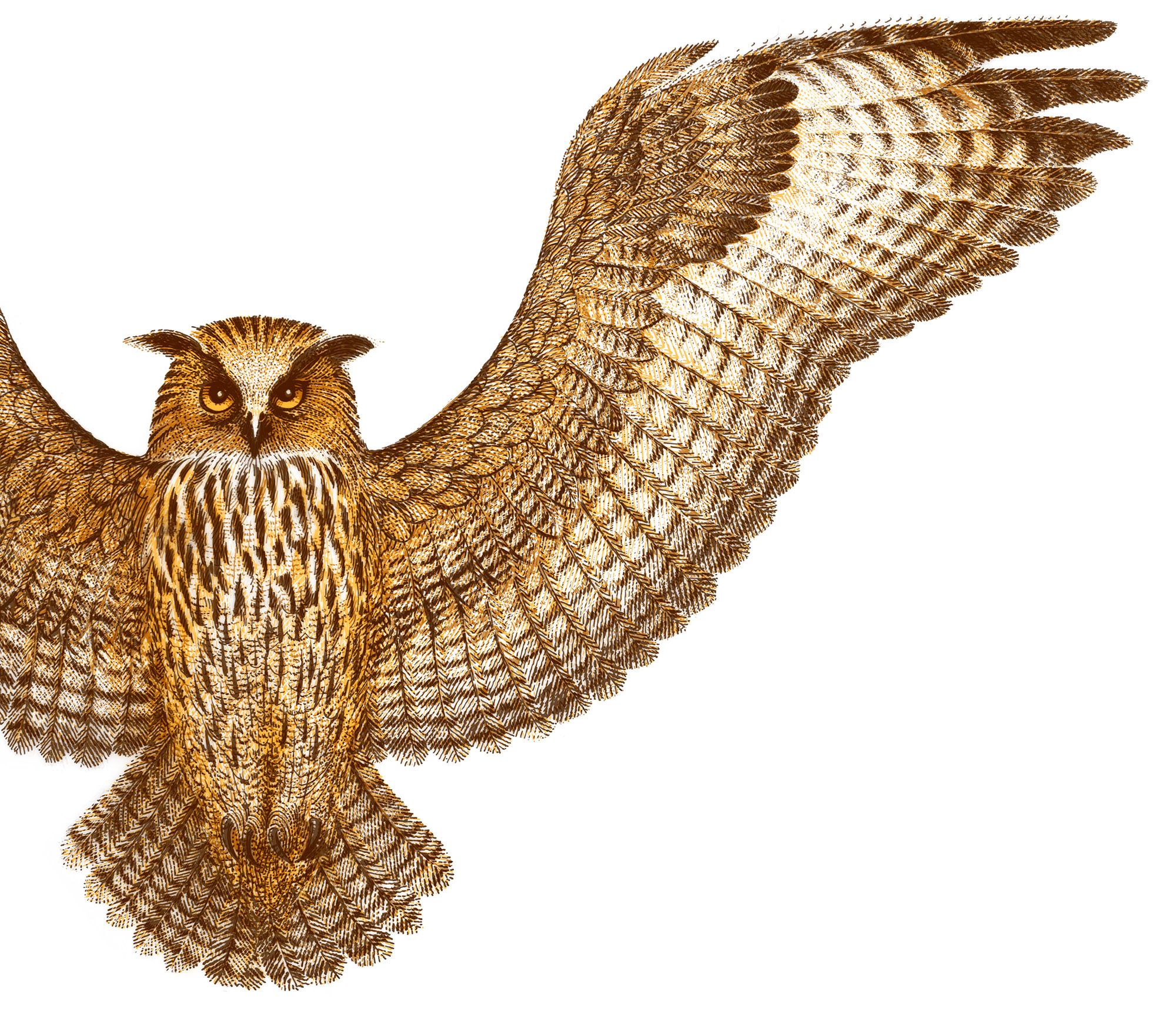 Näyttelyssä on esillä muun muassa Erik Bruunin piirros huuhkajasta. Kuva: Postimuseo