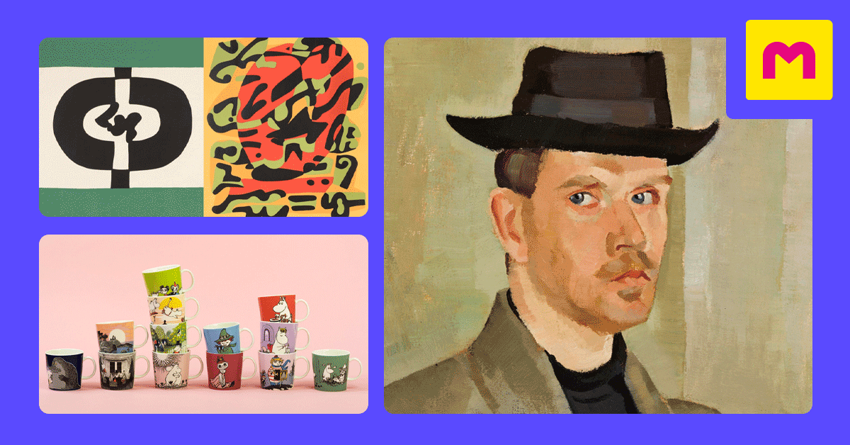 Museovuosi 2026 kokoaa yhteen huippunäyttelyt Tove Janssonista Maradonaan ja saamelaiskulttuurista muotoilun klassikoihin ympäri Suomen. Kuvat: Eero Nelimarkka, Omakuva (1922); Muumimukit, Muumimuseo; Howard Smith, EMMA.