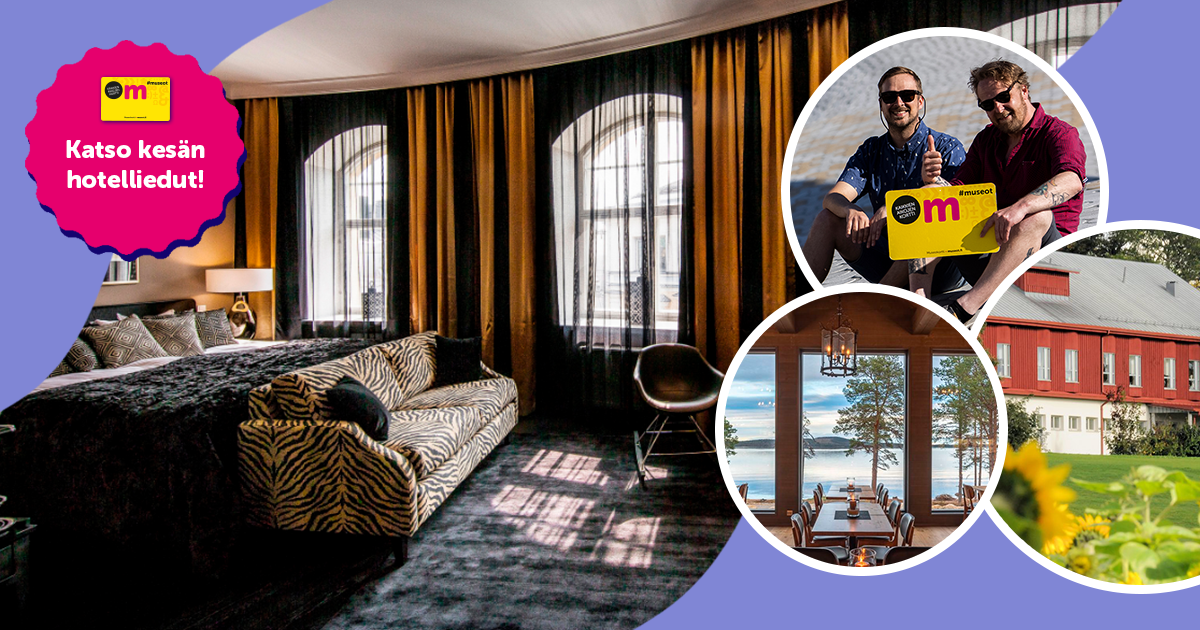 Museokortti on kesän paras reissukaveri. Saat pääsyn 360 museoon ja alennusta yli 30 hotellista ympäri Suomen. Vaihtoehtoja löytyy moneen makuun: voit majoittua mökissä järven rannalla, viihtyisissä kaupunkihotelleissa tai kodikkaissa hostelleissa.