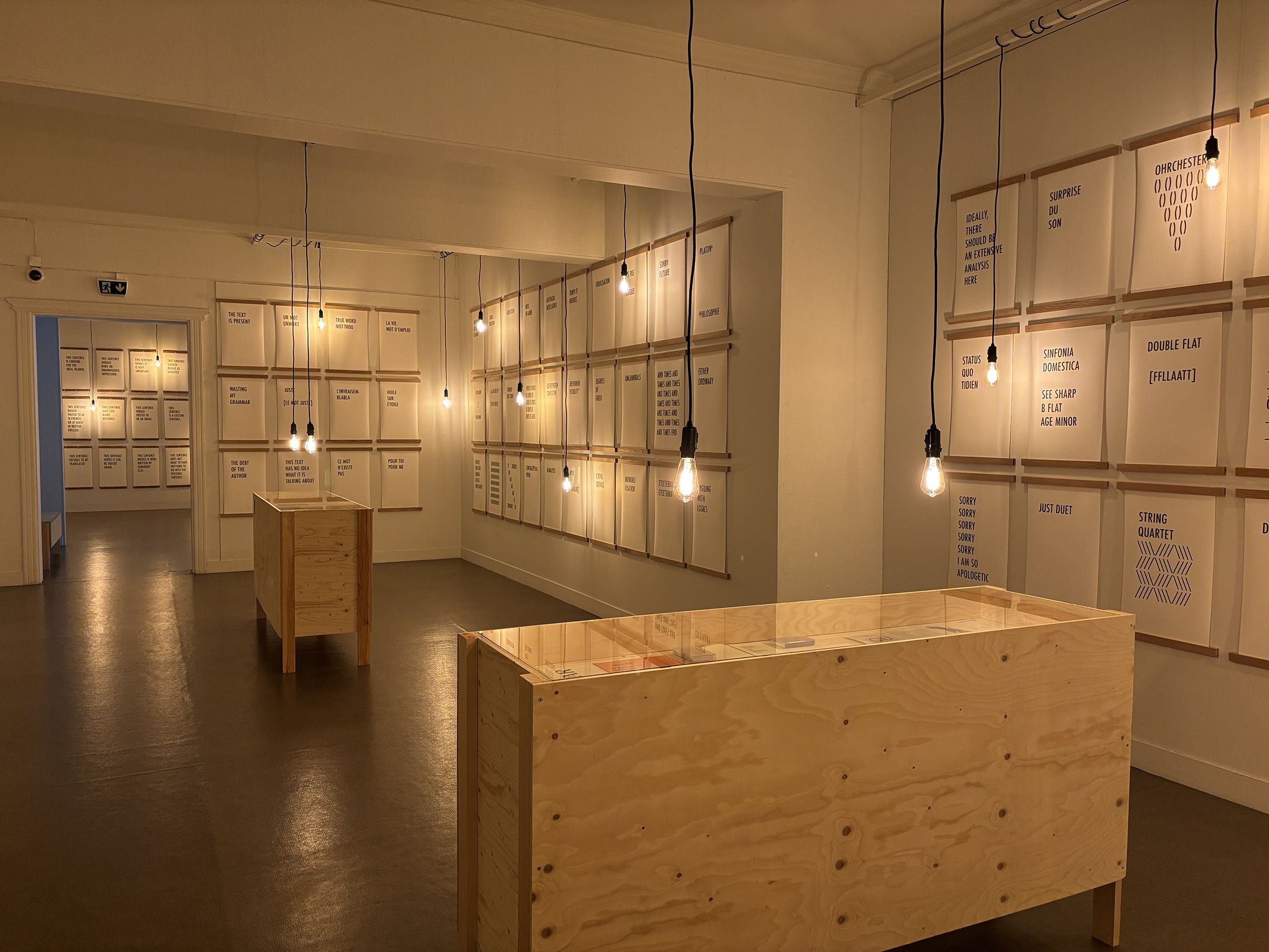 Minimalistisen kaunis näyttely perustuu Rinteen Vad angår meningar är jag förtvivlad (I am very miserable about sentences) -yksityisnäyttelyyn Marabouparken -taidehallissa Tukholmassa keväällä 2024, ja jota laajennetaan Rinteen uusilla ja vanhoilla teoksilla Rauman taidemuseoon. Näyttely on myös Rauman taidemuseolle uusi avaus minimalistisen, kielipeleihin perustuvan nykytaidenäyttelyn alueella, jossa Rinteen tekemät esine- ja videoinstallaatiot ovat keskiössä.