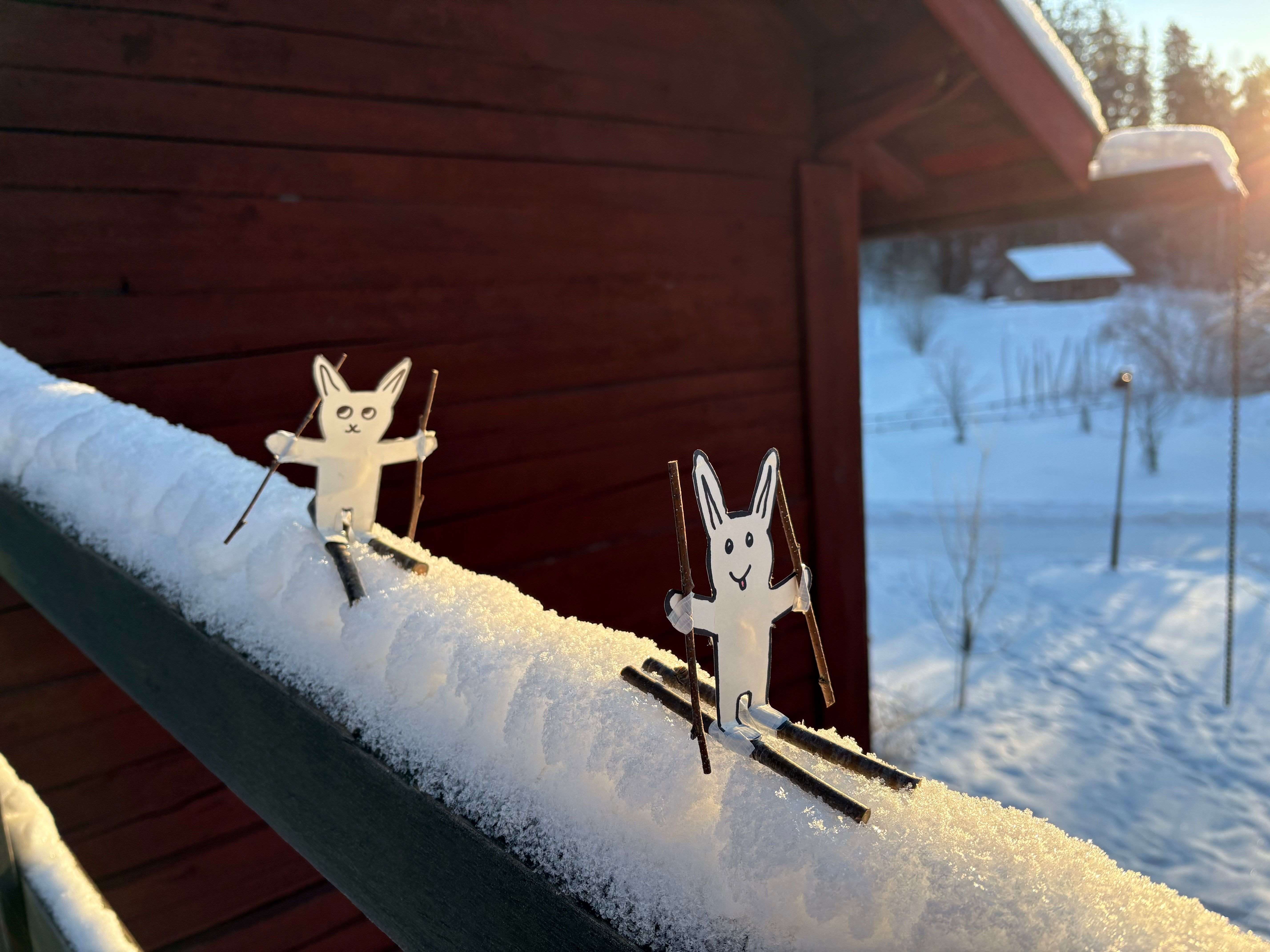 Talviloman iloksi puput saivat uudet sukset ja lähtivät heti ladulle. Onnistutko näkemään talviriemuisia pupuja Glimsin rakennuksissa? Pupujen luota löydät myös tietoa eläinten talvipuuhista.