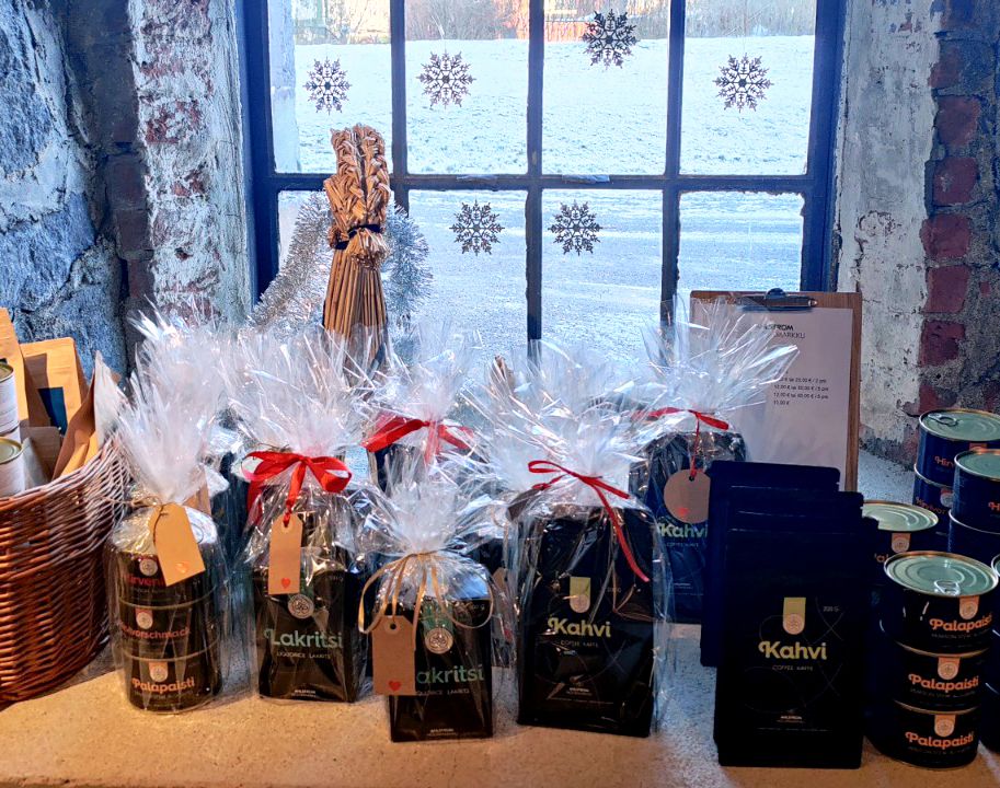 I julbutiken hittar du julklappar för alla smaker. Sortimentet innehåller brukets egna produkter såsom viltkonserver, kaffe, te och lakrits. Alltid uppskattade julklappar är också Johanna Gullichsens högklassiga textilier, glasföremål från Iittala samt böcker om historia, arkitektur och design.