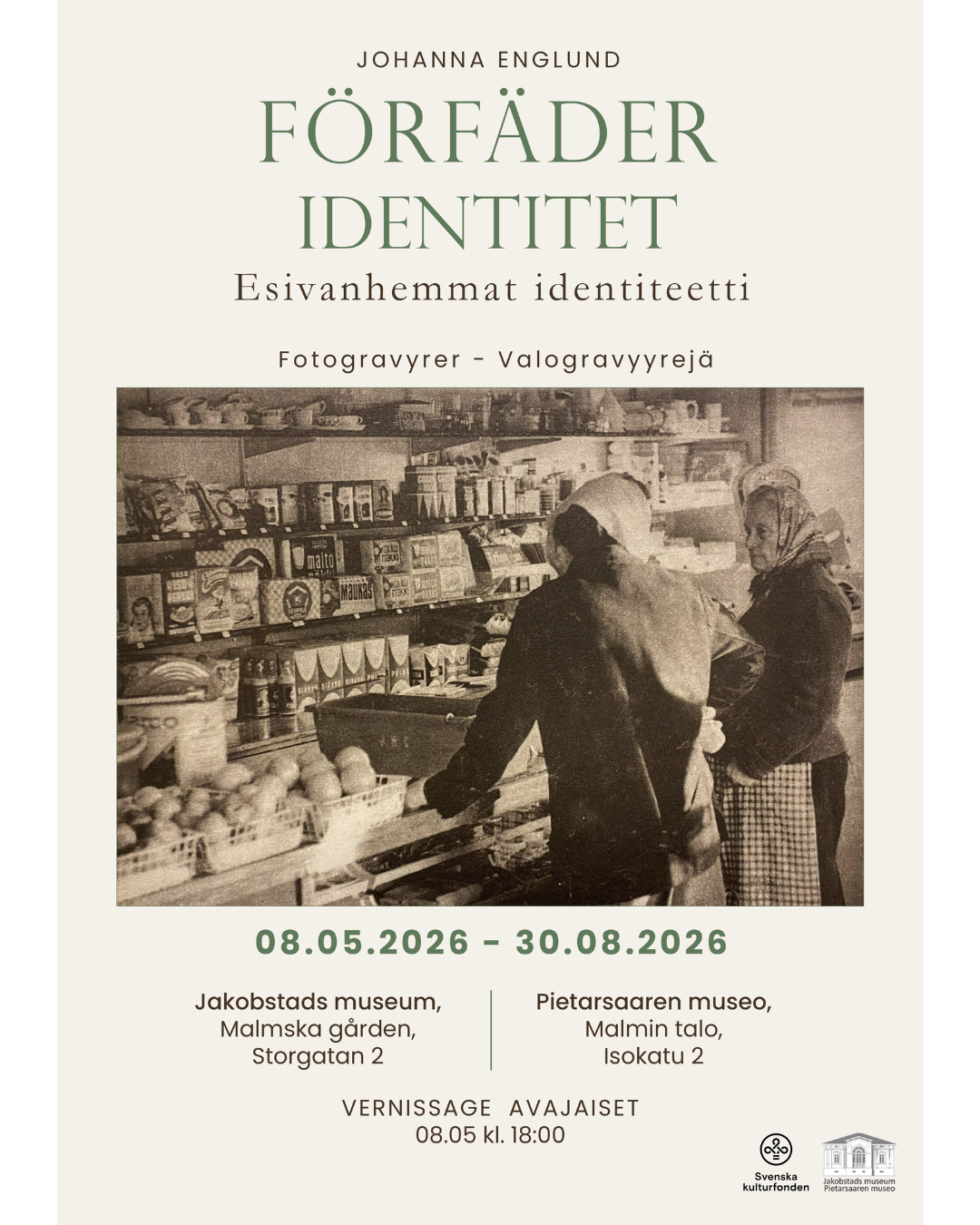 Onsdag 22.7.2026 kl. 14 håller Johanna Englund tillsammans med Jeanette Edfelt en presentation (på svenska) med temat "Förfäder, identitet och släktföremål". Inträdet är den dagen fritt!